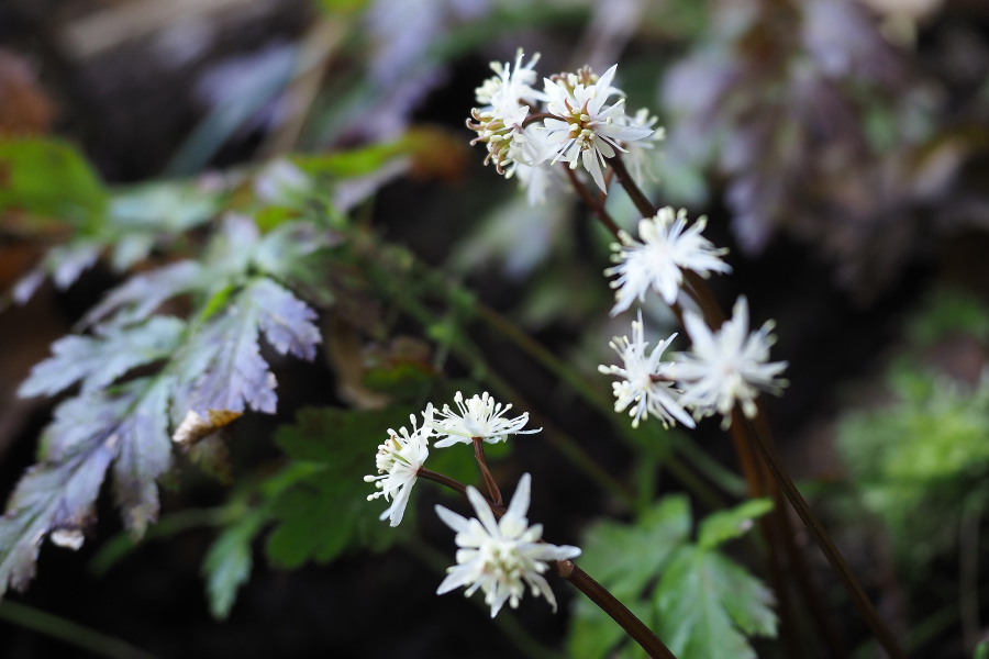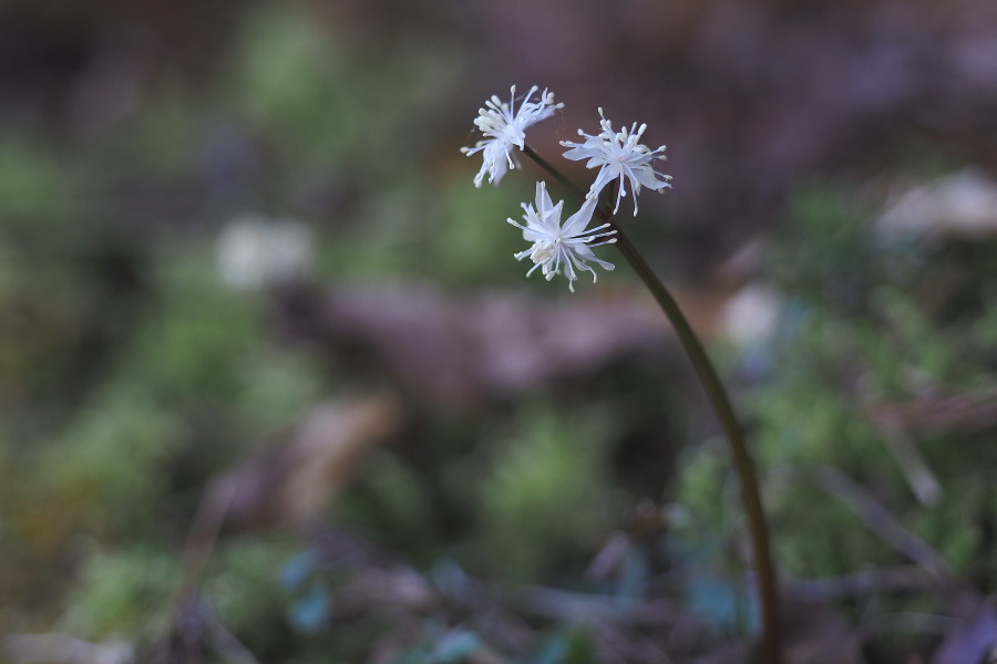 杉林の斜面に白い小さな花を咲かせていた。チョット斜面で撮影しずらい。