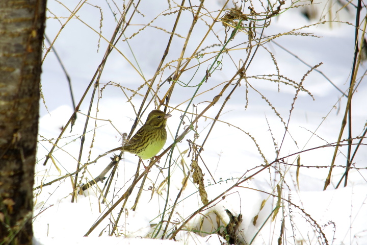 目の前に、アオジが動いていました。