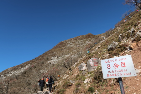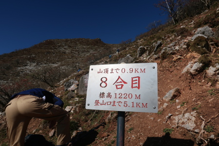 | 駐車場8:30---9:23一合目---9:48二合目---10:19三合目10:38---10:45四合目---10:57五合目---11:15六合目---11:31七合目---11:49八合目11:58 12:17山頂稜線---12:24山頂13:38--13:59八合目----14:42五合目---15:03三合目---15:41二合目---16:25駐車場 |