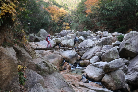 | 裏道登山口9:10---9:50藤内小屋---10:11兎の耳---10:16水場---10:30藤内壁出合い---10:49六合目---11:12七合目---11:26国見峠(大休憩) ---12:08国見岳---13::16国見峠---15:14登山口 久しぶりに、鈴鹿の山へ。現地に着いたが、駐車場はどこも一杯。路駐でも白線から、はみだすと警告書が張られる。登山口から10分ぐらい下でやっと止める事が出来た。 身支度して、出発。御在所岳へも登れるので、登山者は多い。道は、思ったほど荒れていなかった。 |