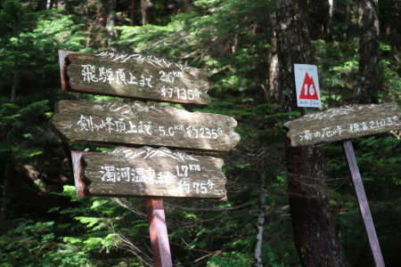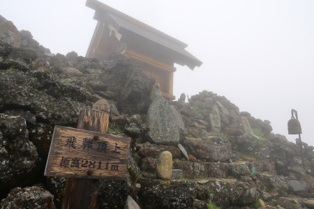 | 濁河駐車場5:40---6:20旧登山道との出会い--6;50七合目---6;55ジョーズ岩---7:20湯の花峠bP6---7:49蛙岩---8:11のぞき岩避難小屋 9:16八合目(お助け水)---11:28---11:30五の池小屋-下山--13:23八合目(お助け水)---11:27飛騨頂上---11:30五の池小屋--- 13:23八合目(お助け水)---13:56のぞき岩避難小屋---14:16蛙岩---14:37湯の花峠ーーー15:07ジョーズ岩---16:28登山口 |