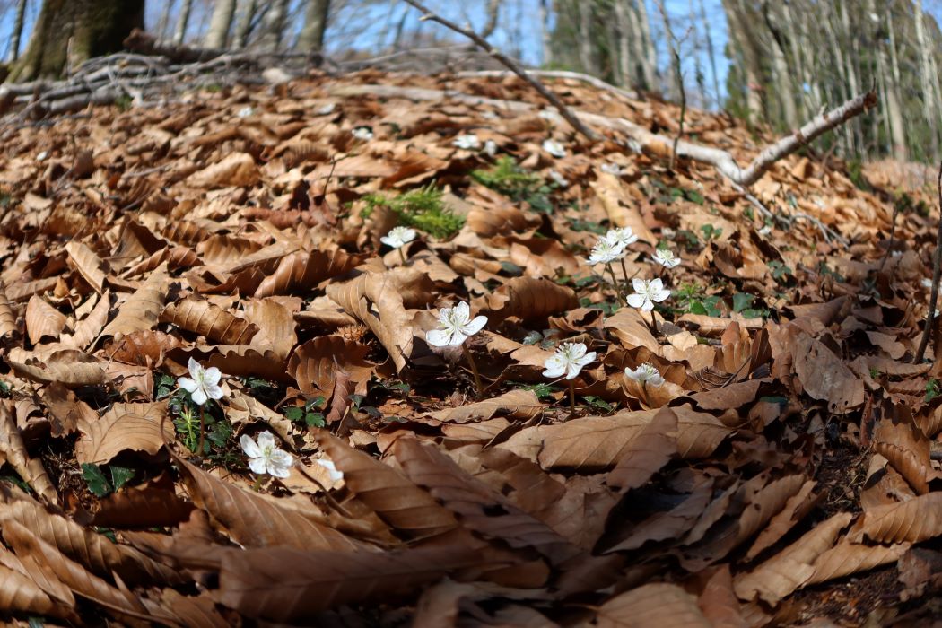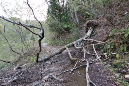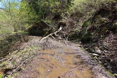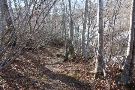 5:33倒木---6:17平家平---7:26ブナ林---7:35鞍部の残雪 この先不明で上部まで登ってみたが折り返す---9:05ブナ林 オウレン散策---11:51林道倒木地点