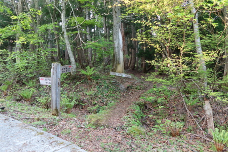 林道から登山道に入ります。