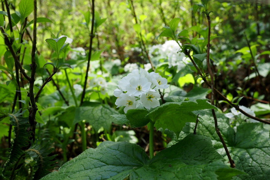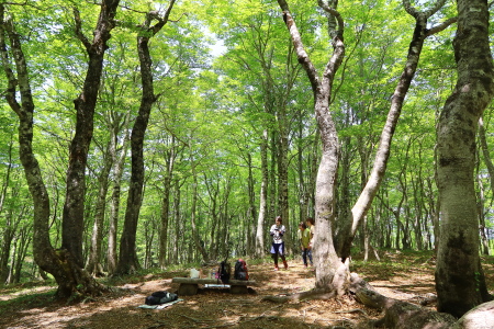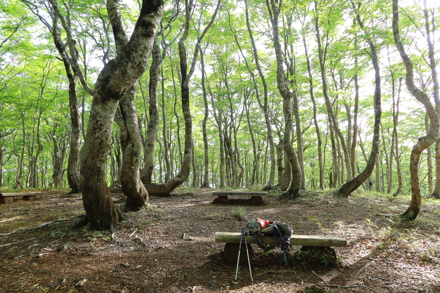 5:55出発---7:02ブナ林7:11---7:16鞍部の残雪があった所---7:32水芭蕉群生地(案内板だけ)---9:28山頂--- 10:42水芭蕉群生地の看板ーーー11:16ブナ林---13:04駐車場