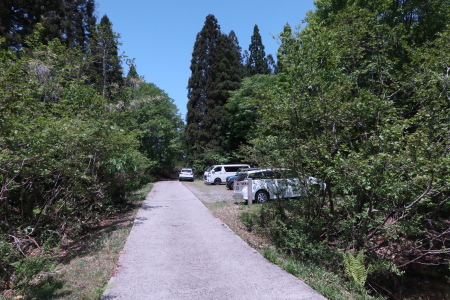 駐車場を出て出発。駐車場は左側です。