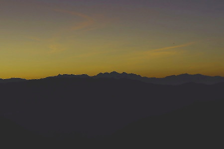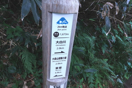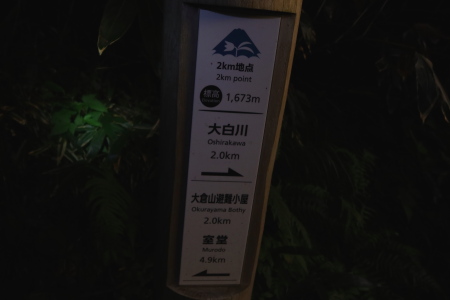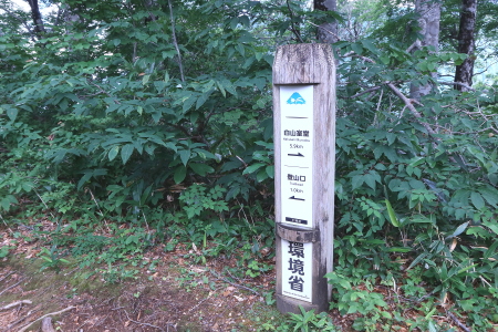 登山口3:19---3:561km標識---4:25夜明け・北アルプス連峰---4:31 2km標識---5:10ブナのコブ---5:20 3km標識---5:26白山が見えてきました。---5:51
