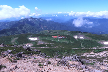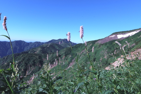 11:23高天ヶ原---11:40室堂11:59---12:43カンクラ雪渓---13:16 5km標識---13:44大倉山---14:09見ず無味が見えてきましたーーー14:17ブナのコブーーー14;53