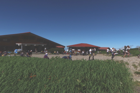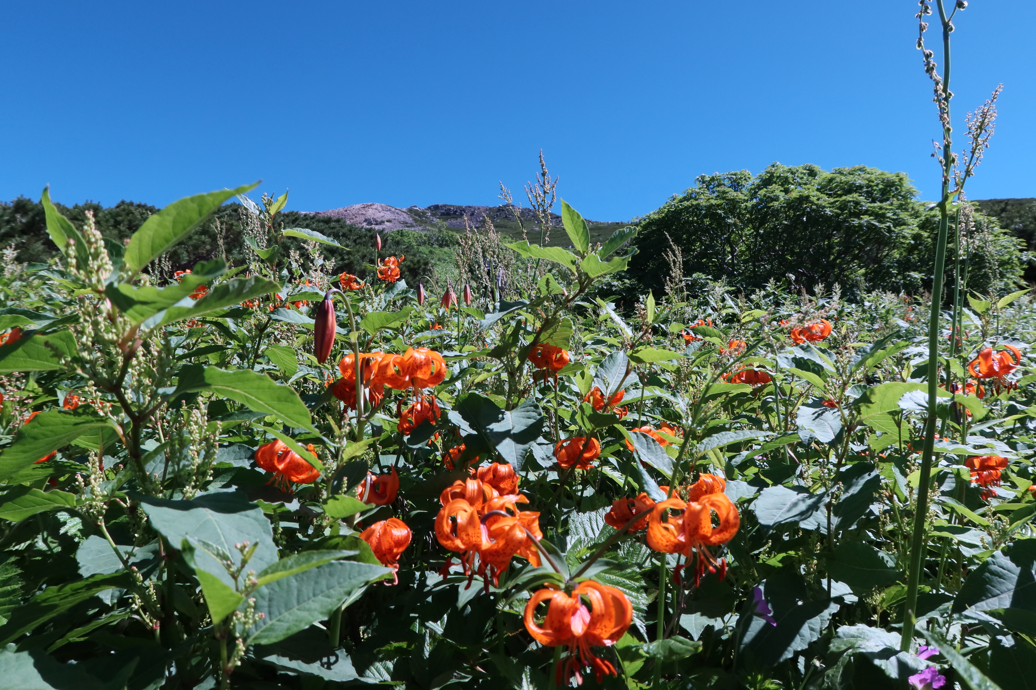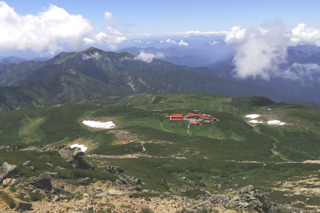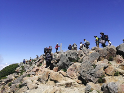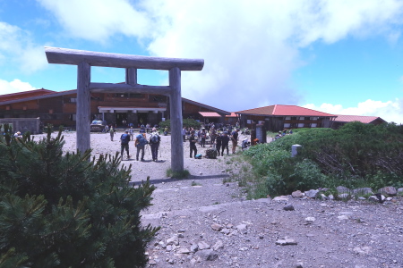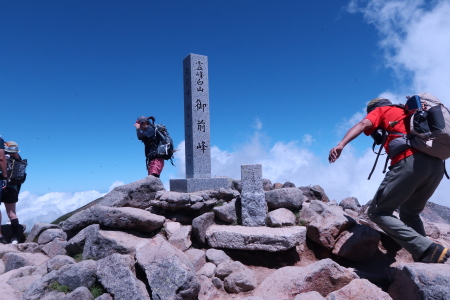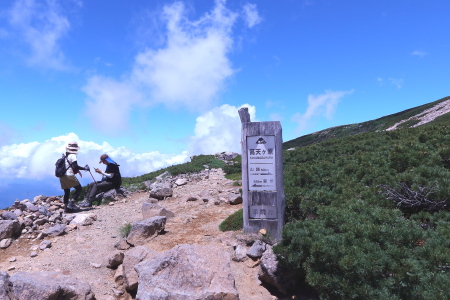 11:00御前峰11:05-ーー6:50 5km標識--7:37 5.7kmカンクラ雪渓ーーー7:45別山・イブキトラノオーーー8:41賽の河原--9:30室堂9:38---10:28高天ヶ原---11:00御前峰11:05---