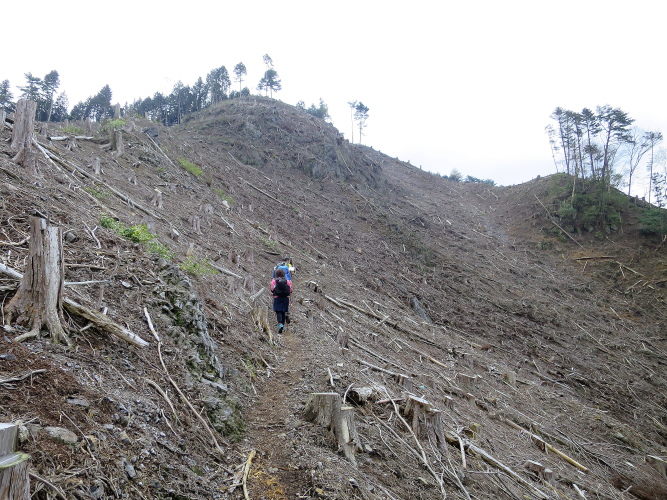 東ルートは、昨年に登山道一体で伐採が行われ閉鎖されていたが、今年は新の道が付けられていた。