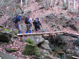 駐車場には二グループが来ていた。今日は、地元の長屋さんの案内で、登りは「奥牧谷」から。