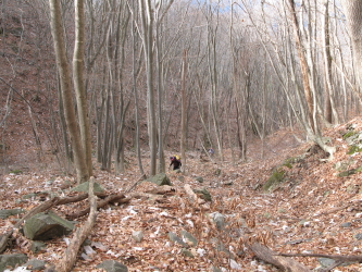 沢の上部を歩く。この辺は踏み跡程度の道になる。