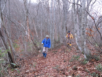途中、落ち葉で道は不明瞭になるが急登を登って行くと一般的な登山道に出る。頂上は近い。