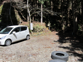 | 登山口の駐車場 止められない時は、 少し林道をのぼった所に止める。 |