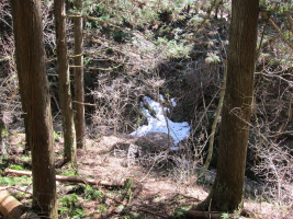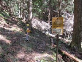 | 分岐に到着。ここで谷筋の道と分かれて、 しばらく植林帯の道を登ります。 |