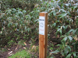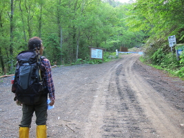 一時間半ほどで、やっと冷水コース登山口に着きました。ヒュッテには寄りませんでした。